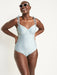 Tie-Shoulder Striped Seersucker Underwire One-Piece Swimsuit for Women