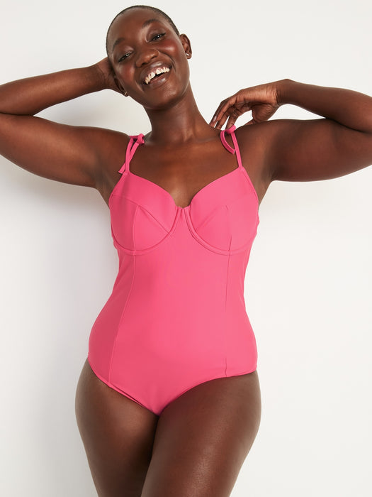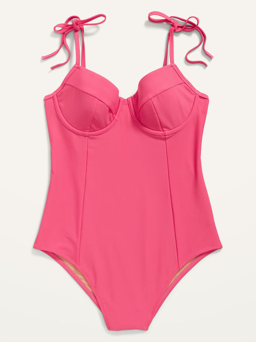 Tie-Shoulder Underwire One-Piece Swimsuit