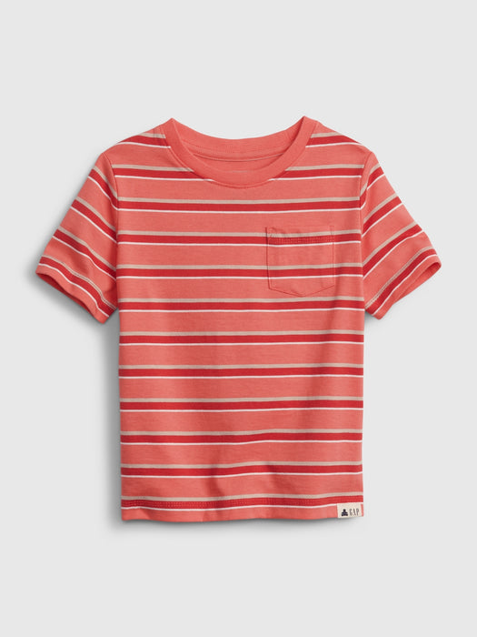 Toddler 100% Organic Cotton Mix & Match Pocket T-Shirt - red stripe combo