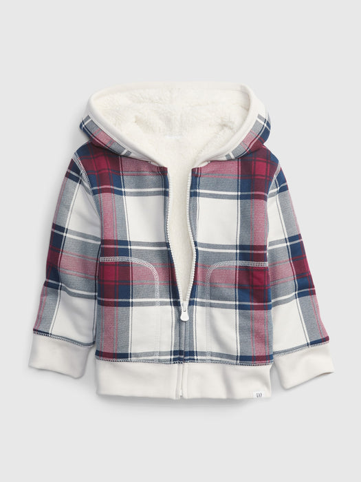 Toddler Cozy Sherpa Hoodie - white red plaid
