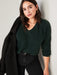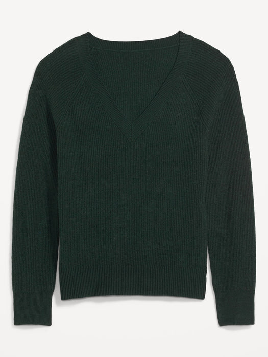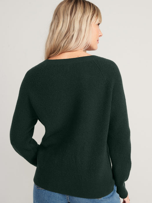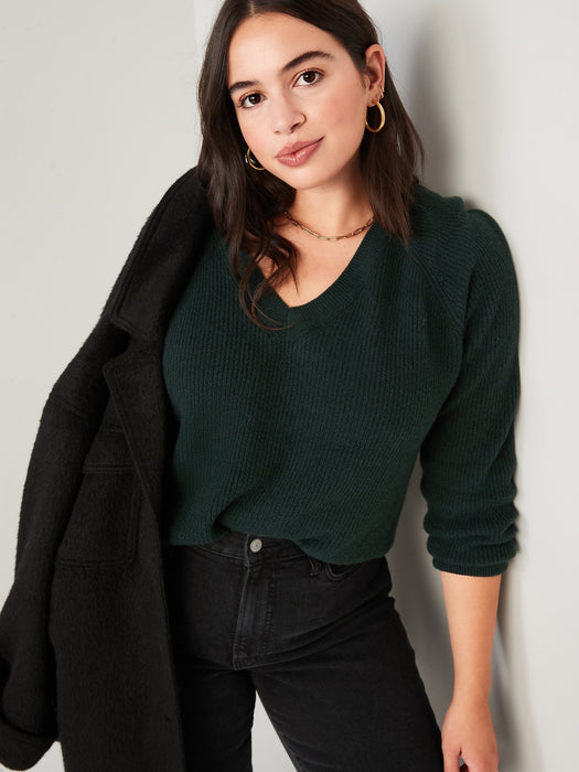 V-Neck Shaker-Stitch Cocoon Sweater for Women