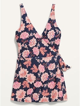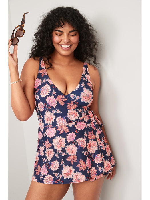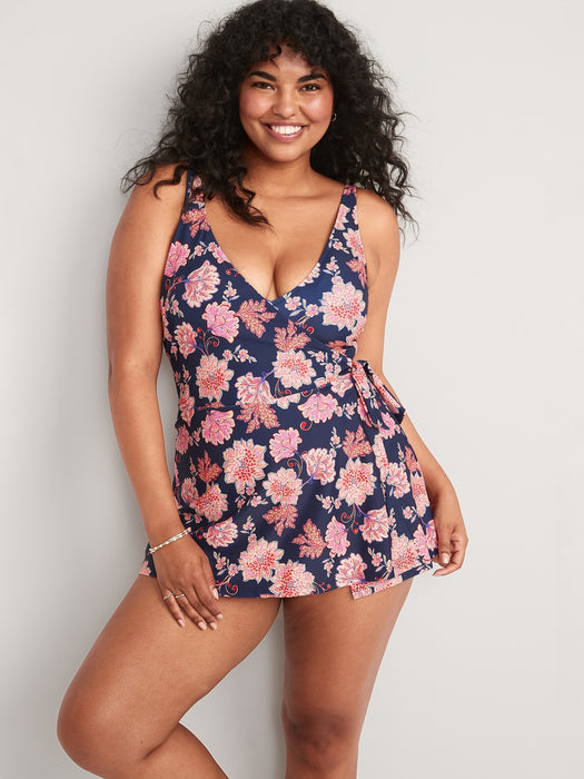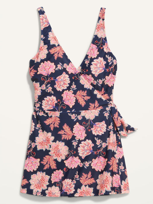 V-Neck Wrap-Front Swimsuit Dress for Women