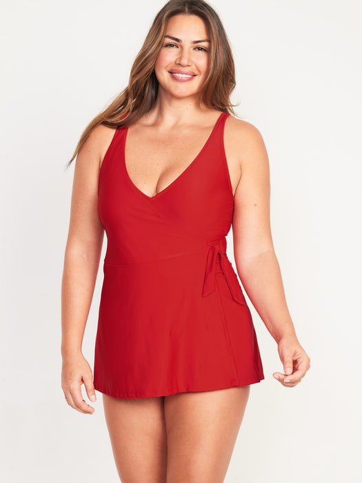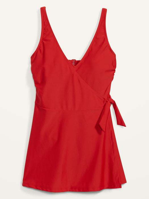 V-Neck Wrap-Front Swimsuit Dress for Women