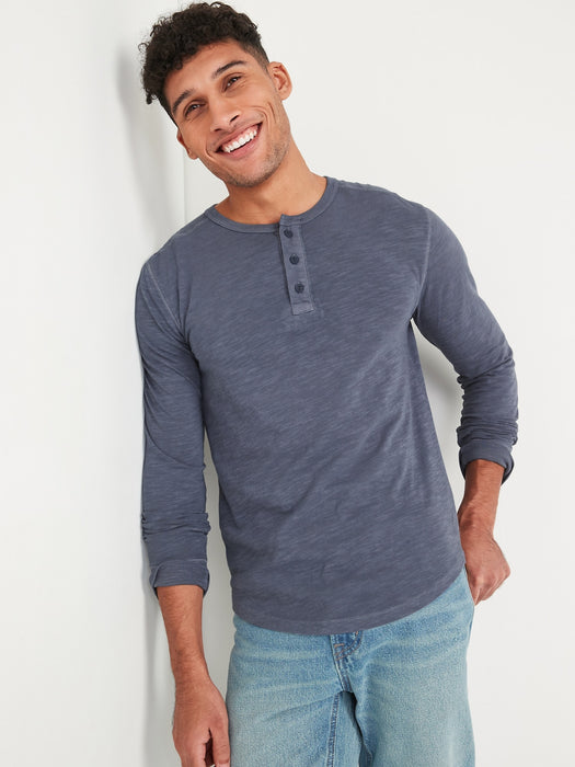 Vintage Garment-Dyed Long-Sleeve Henley T-Shirt for Men
