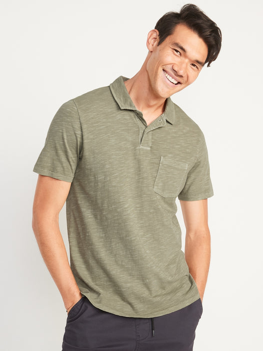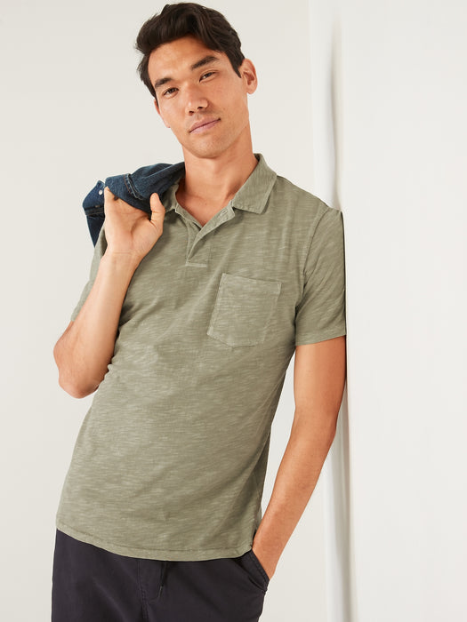 Vintage Garment-Dyed Slub-Knit Polo Shirt for Men - Green