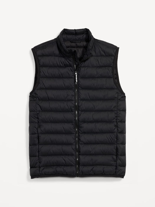 Water-Resistant Narrow-Channel Puffer Vest for Men - Black