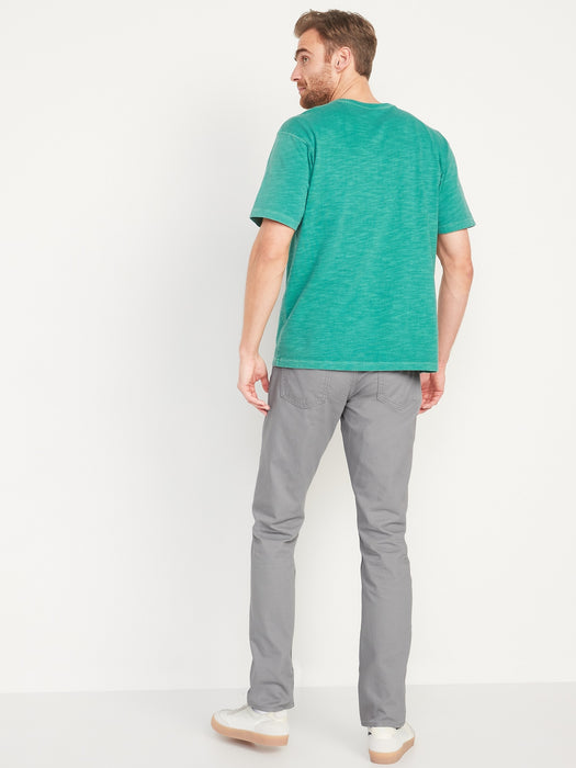 Sits at waist. Slim through hip and thigh. Slim leg. Men's pop-color jeans hit below ankle. Model is approximately 6'1" and wears a size 32W x 32L.