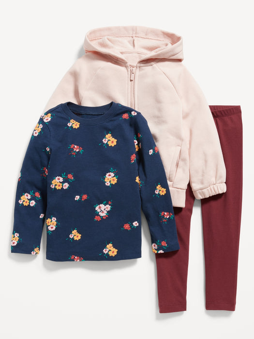 Zip Hoodie, Long-Sleeve T-Shirt & Leggings 3-Pack for Toddler Girls